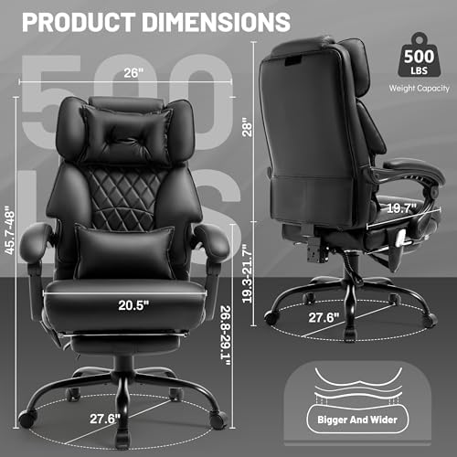 Ekskluzywne masażowe krzesło zaprojektowane z myślą o osobach o zwiększonej wadze do 500 funtów. Wyposażone w sześć precyzyjnych punktów wibracji i funkcję ogrzewania, które skutecznie rozluźniają mięśnie i redukują napięcie. Ergonomiczny kształt wraz z dwufunkcyjną poduszką zapewnia doskonałe wsparcie głowy lub odcinka lędźwiowego, dbając o prawidłową postawę kręgosłupa podczas długotrwałego siedzenia. Podnóżek umożliwia pełne wyprostowanie nóg, a funkcja recliner pozwala na komfortowy odpoczynek w pozycji leżącej. Solidna, szeroka baza gwarantuje stabilność, a skórzana tapicerka nie tylko podkreśla elegancję, ale też ułatwia utrzymanie czystości. Regulacja wysokości pozwala idealnie dopasować krzesło do potrzeb użytkownika, czyniąc je doskonałym wyborem do profesjonalnego biura lub komfortowego domu.