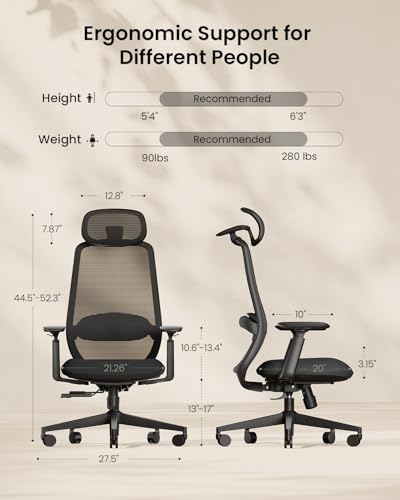 Oparcie wysokie wspiera całą postawę. Podparcie lędźwiowe jest dynamiczne i dostosowujące się. Poduszka pod głowę 3D porusza się w wielu kierunkach. Wysuwane siedzisko pozwala na zmianę głębokości. Duża konstrukcja dla osób wyższych. Czarna siatka utrzymuje komfort przez 8 godzin. Baza stalowa zapewnia solidność. Koła ułatwiają przemieszczanie. Ergonomiczny design redukuje zmęczenie. Idealne do domu lub biura.