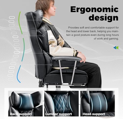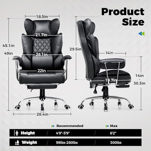 Wysokie skórzane krzesło z kieszonkowym podparciem sprężynowym łączy w sobie luksusowy design z najwyższym komfortem użytkowania. Ergonomicznie zaprojektowane dla osób wyższych, zapewnia odpowiednie wsparcie kręgosłupa dzięki poduszce lędźwiowej oraz łatwej regulacji nachylenia. Solidna, stabilna baza na kółkach gwarantuje trwałość nawet przy intensywnym użytkowaniu, a funkcja podnóżka w pozycji recliner pozwala na pełny relaks. Miękkie, stałe podłokietniki dbają o komfort rąk podczas pracy, tworząc idealne połączenie elegancji i funkcjonalności do każdego prestiżowego biura.